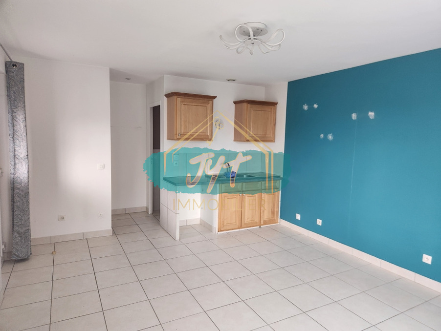 Entrée sur séjour avec cuisine ouverte, salle d'eau et wc.