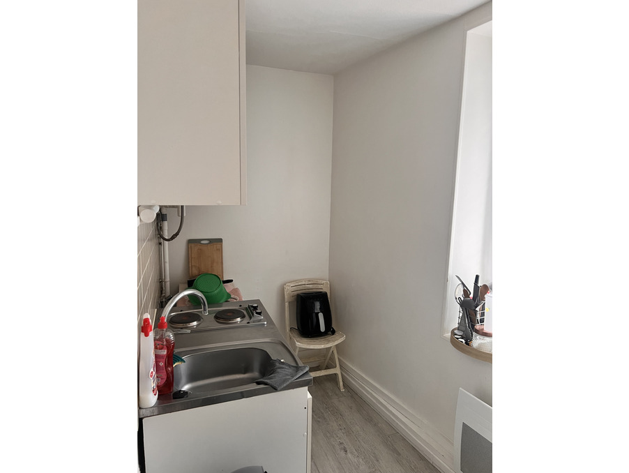 Entrée sur pièce principale, cuisine ouverte, salle d'eau / WC.