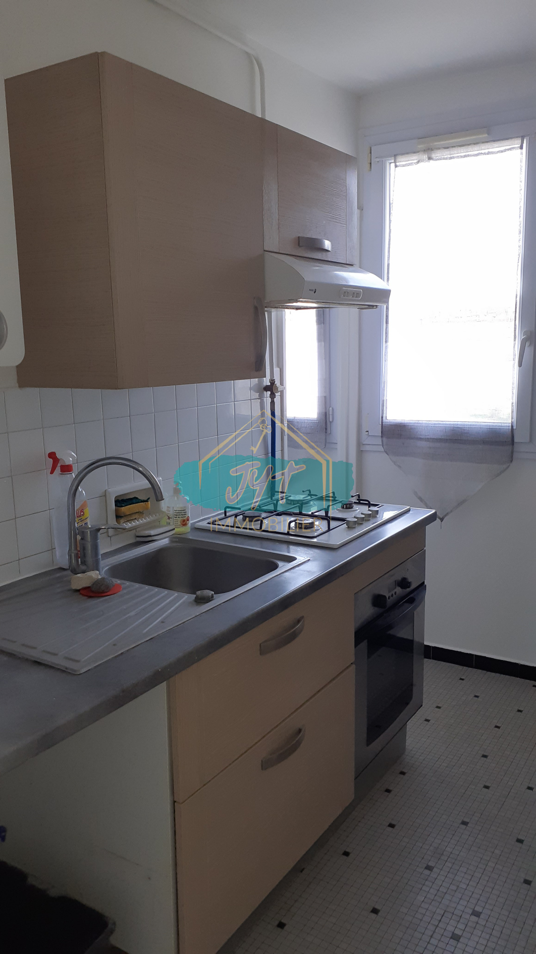 centre ville appartement de type F4 comprenant : entrée, dégagement avec placards, cuisine aménagée acec cellier, salon, salle à manger, deux chambres, salle d'eau, deux chambres, WC.