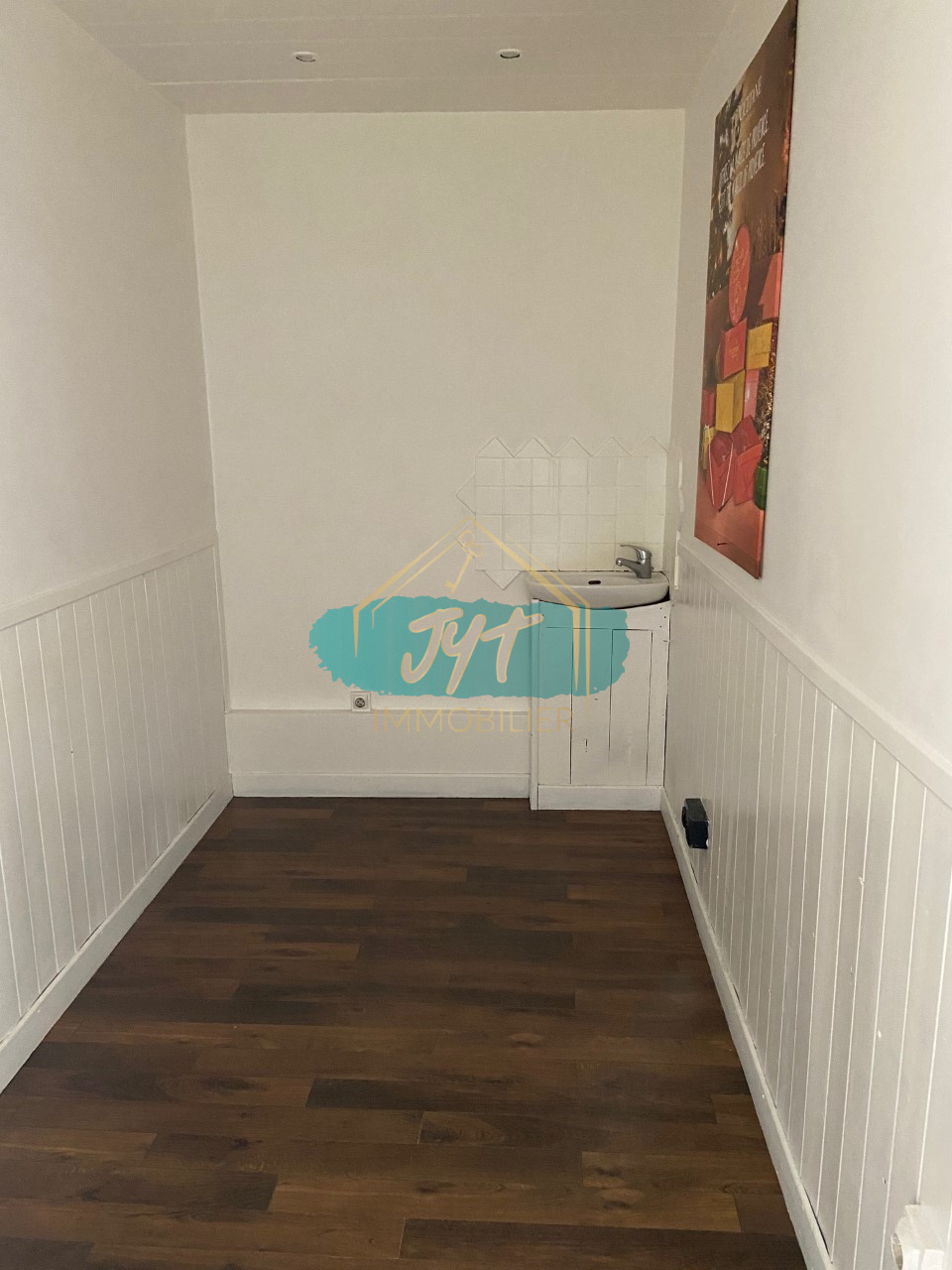 Pièce d'accueil, bureau, salle séparée, pièce avec lavabo, WC.