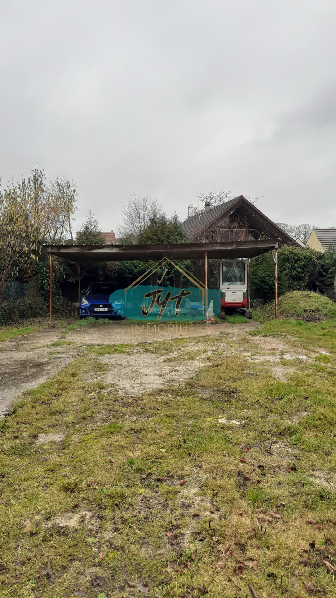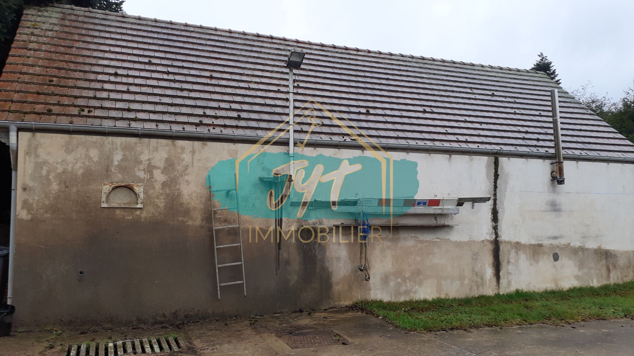 GRAND terrain avec garage atelier 70 m2 environ, dépendance, parking pour stationer machines, camions VL, possibilité de construction, surface 1600 m2.