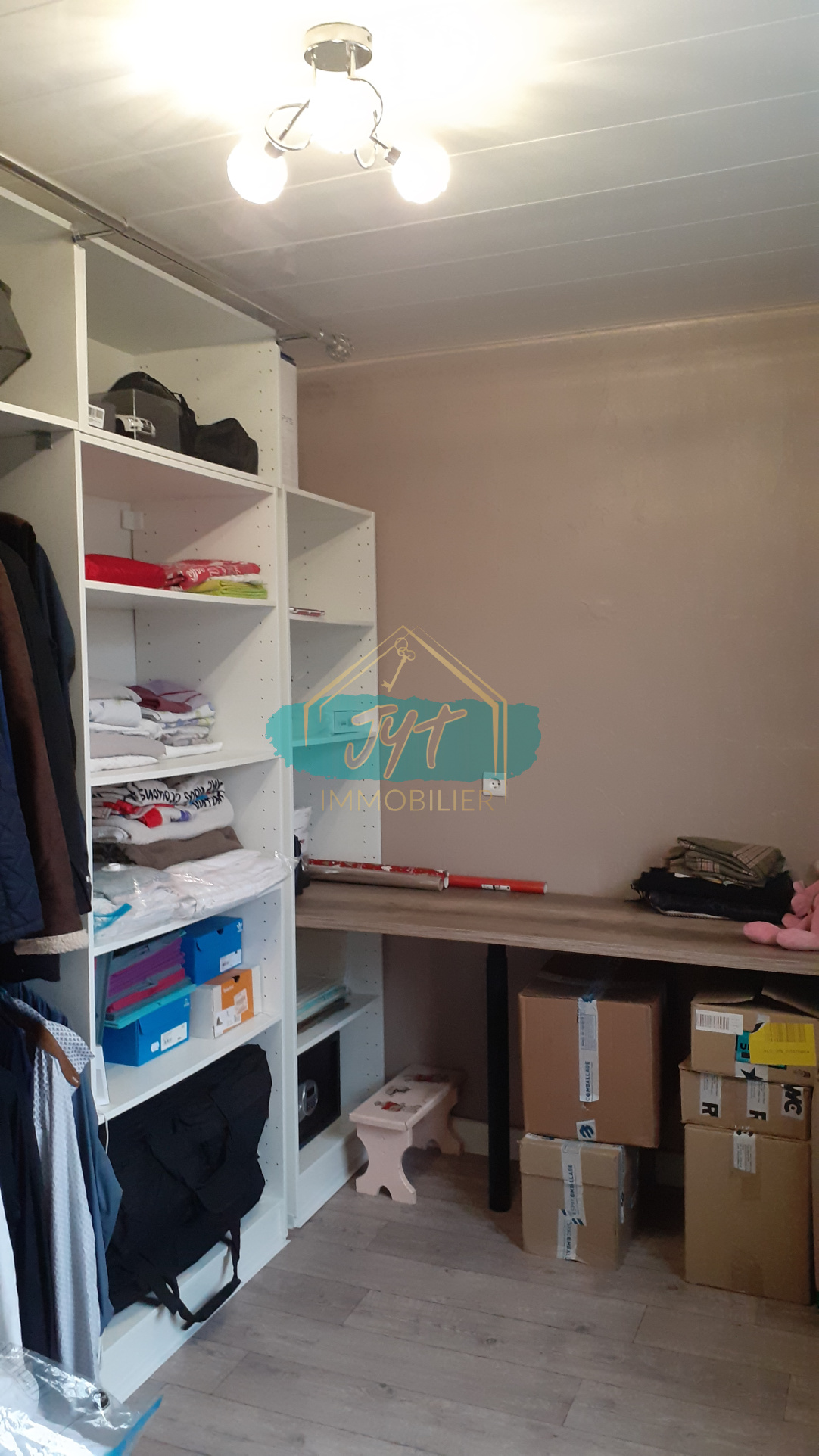 au premier étage : deux grandes chambres, un bureau, salle de bains avec douche et WC. au deuxiéme étage : combles amenagés avec une chambre et coin bureau.